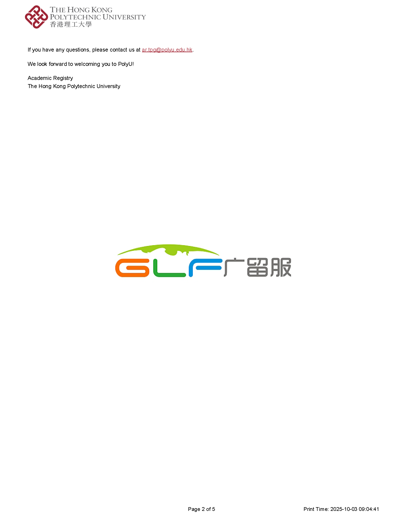 G同学获得香港理工大学首批录取